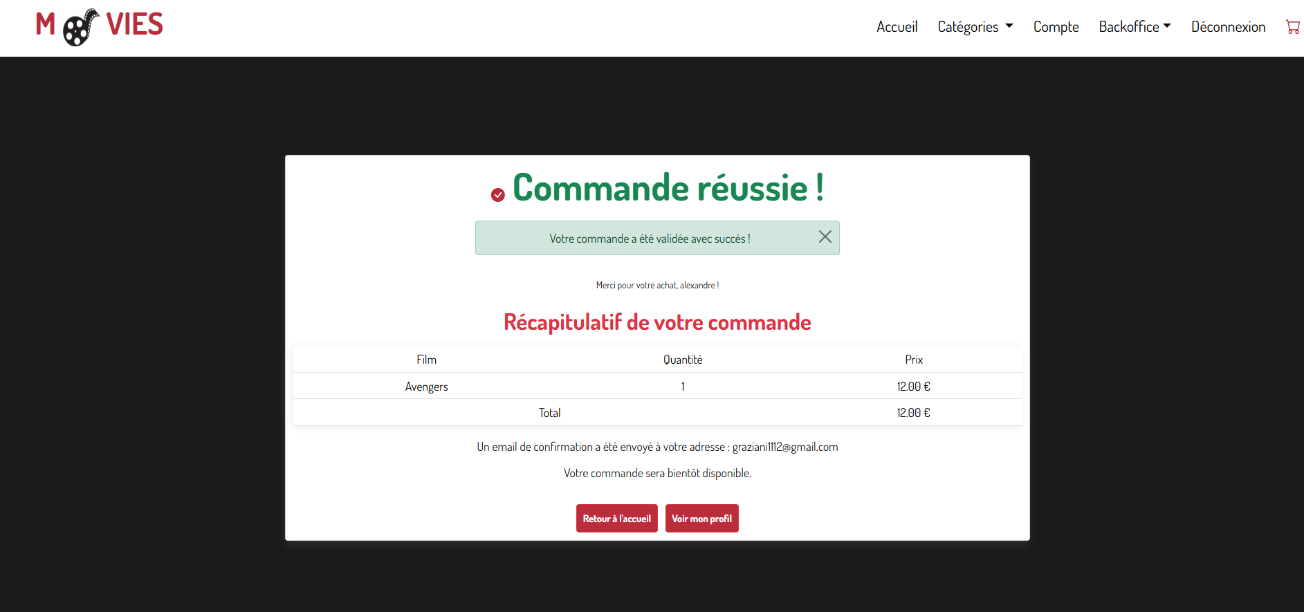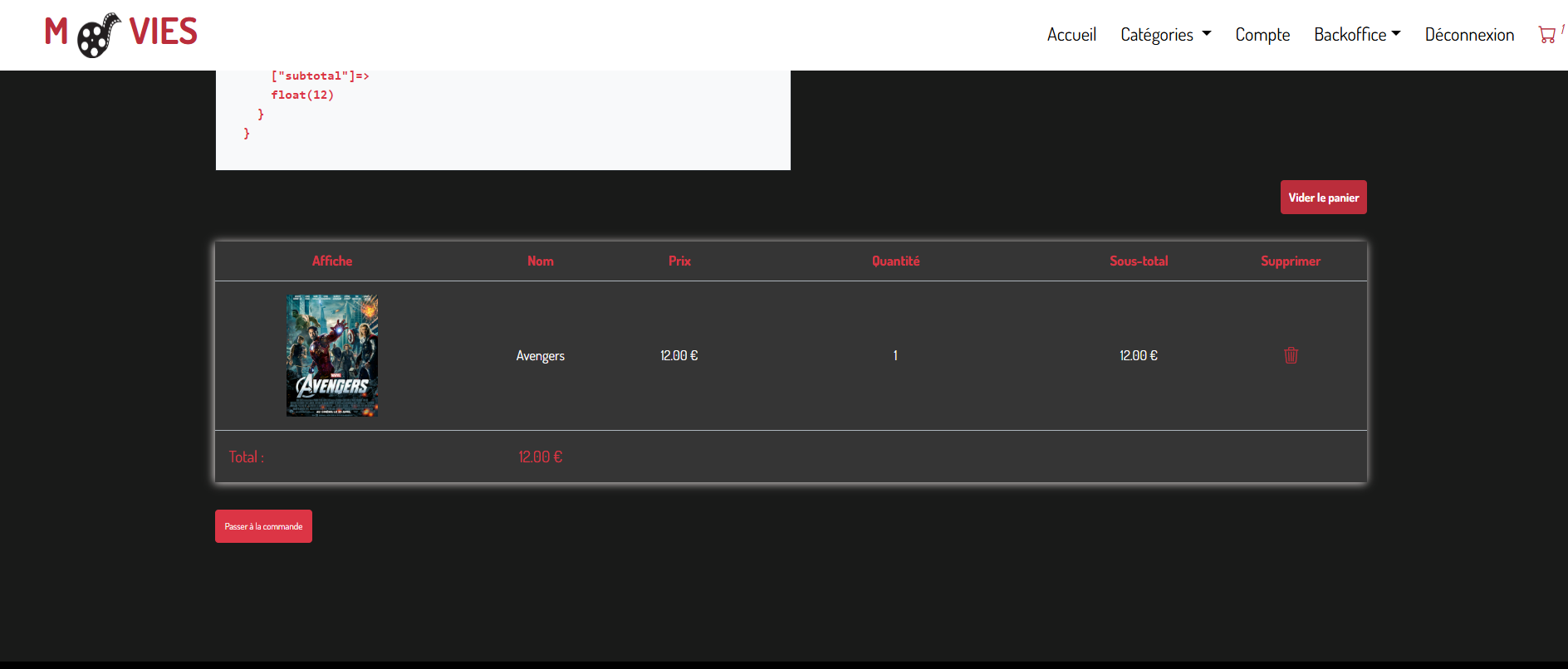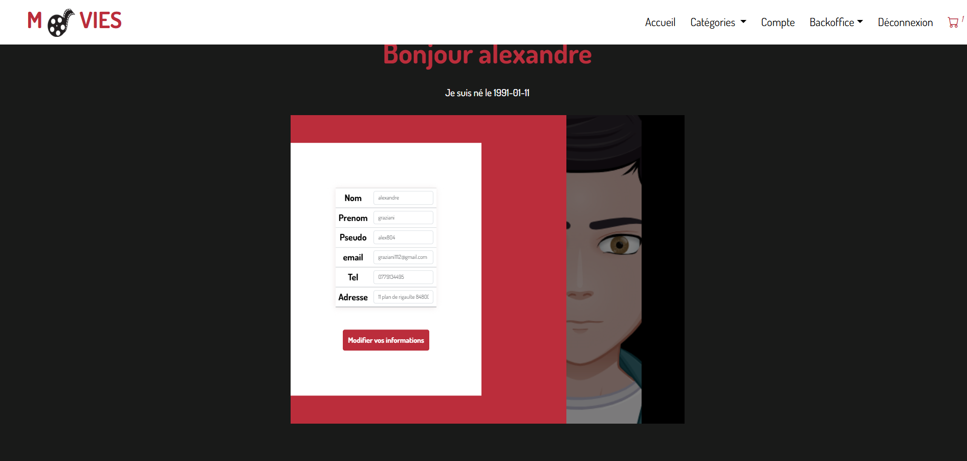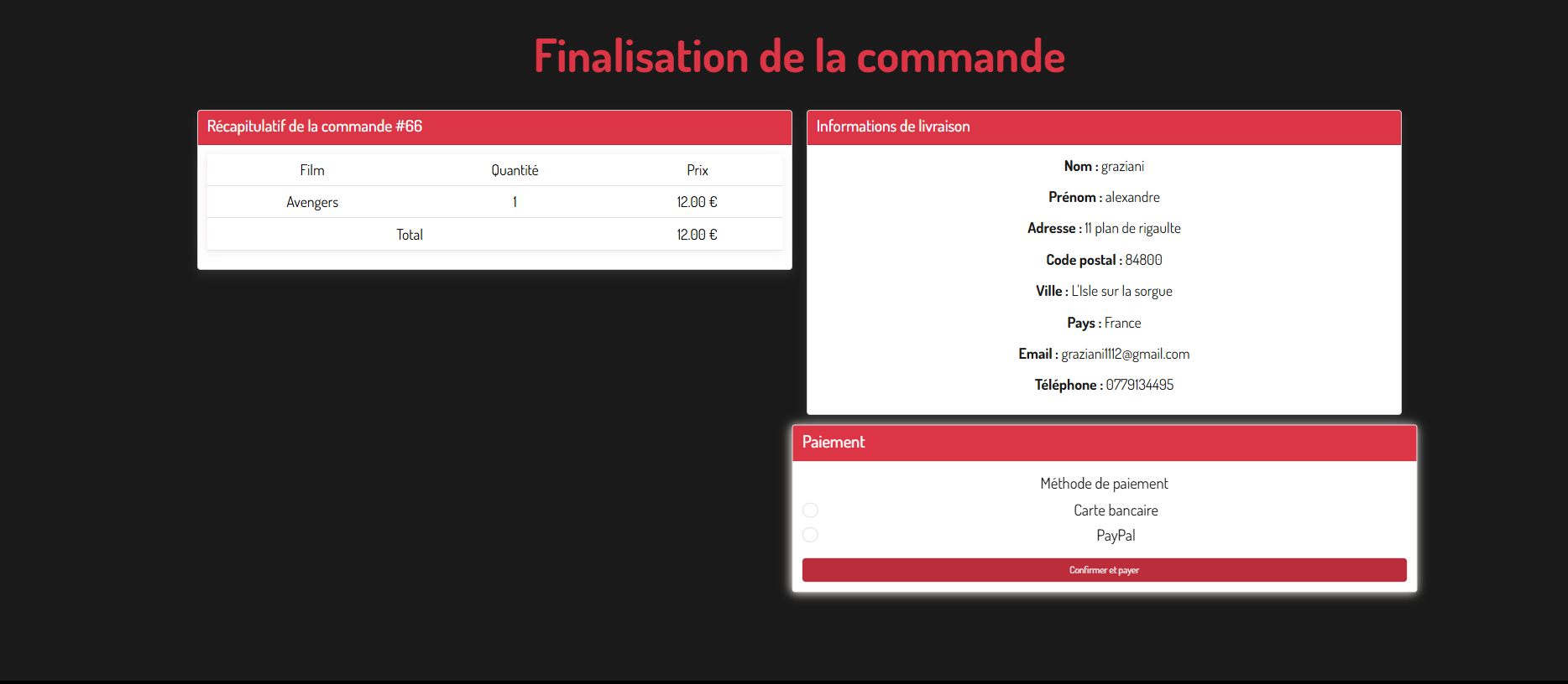 Projet Cinema e-commerce HTML CSS Bootstrap PHP JS Ajax CRUD complet avec Session utilisateur, panier et création de commande