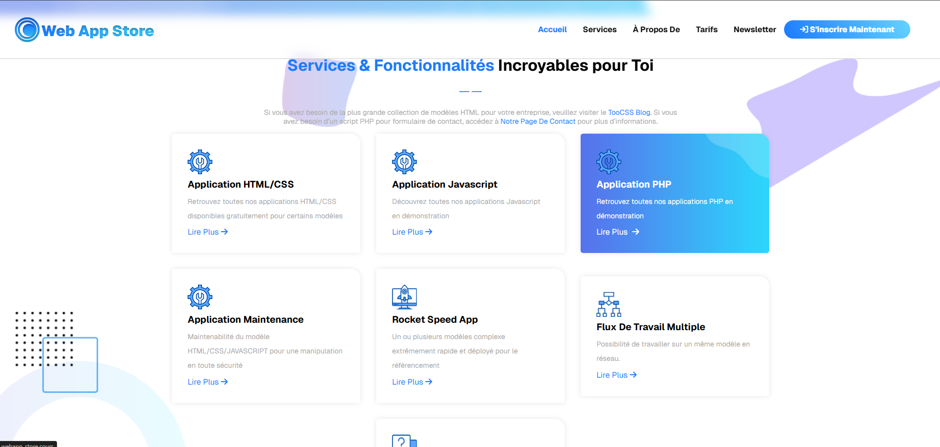 Une plateforme moderne qui développe des modèles HTML, CSS et JavaScript pour faciliter le déploiement d'applications web pour entrepreneurs, particuliers et entreprises.